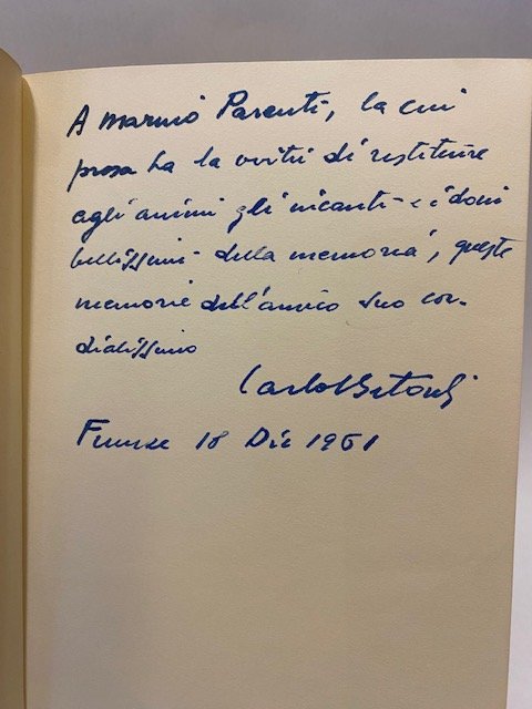 Tela con sovraccoperta di Anita Klinz. Collana Lo Specchio. Ottima copia con bella e lunga DEDICA dell’autore a Marino Parenti. Prima edizione. Crf. Gambetti Vezzosi, 91.