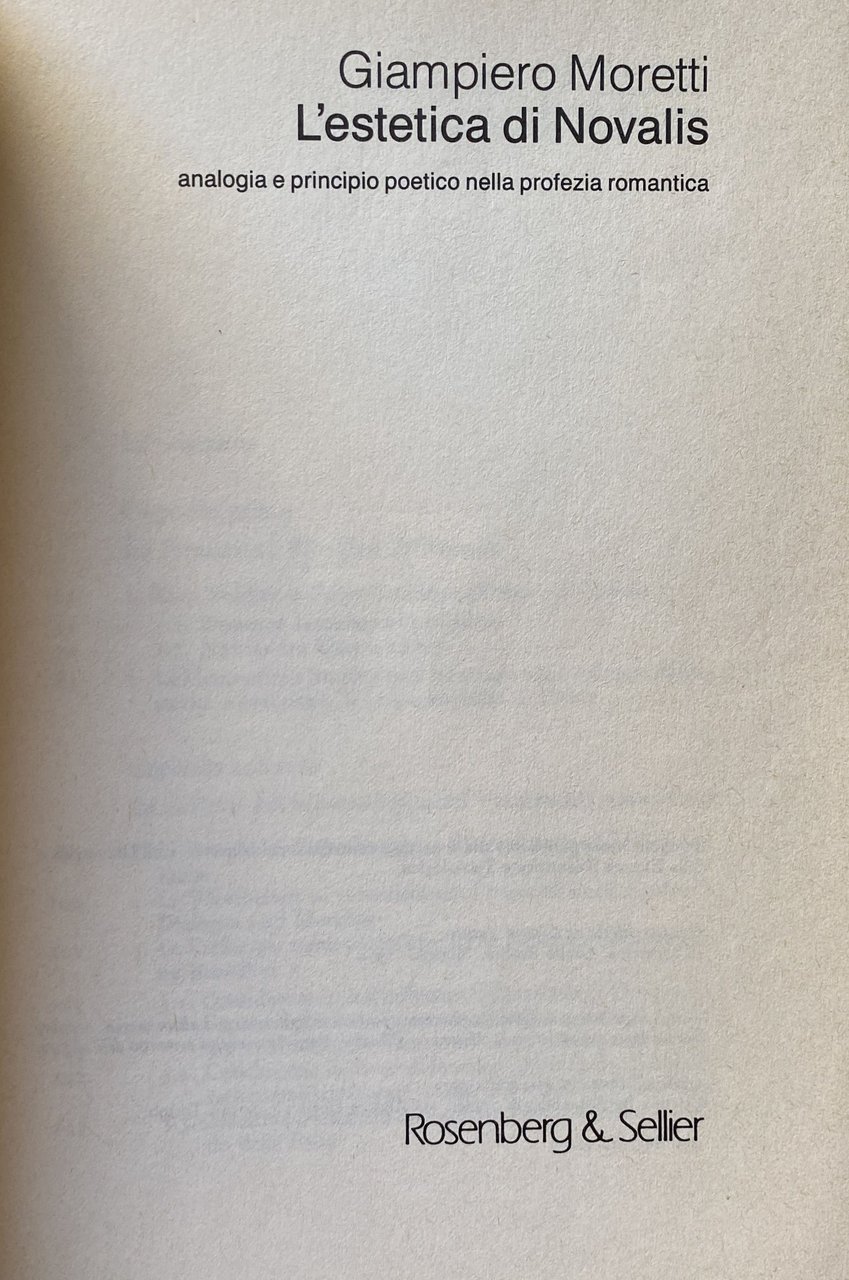 L'ESTETICA DI NOVALIS. ANALOGIA E PRINCIPIO POETICO NELLA PROFEZIA ROMANTICA
