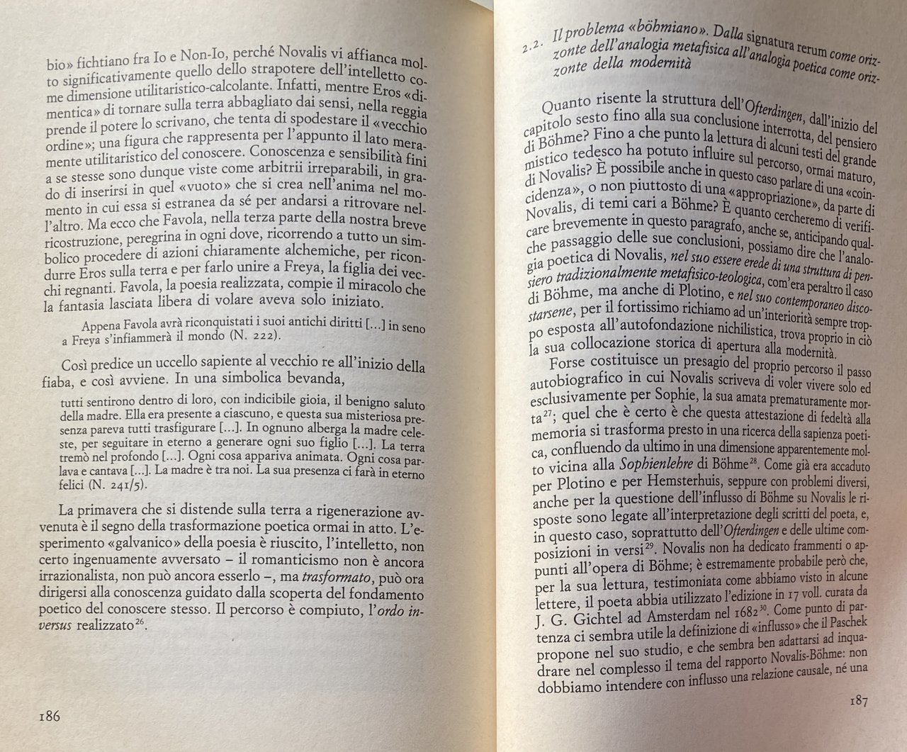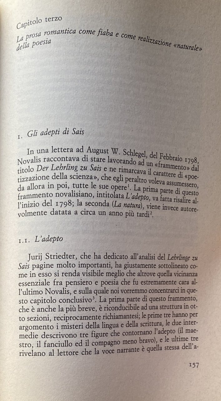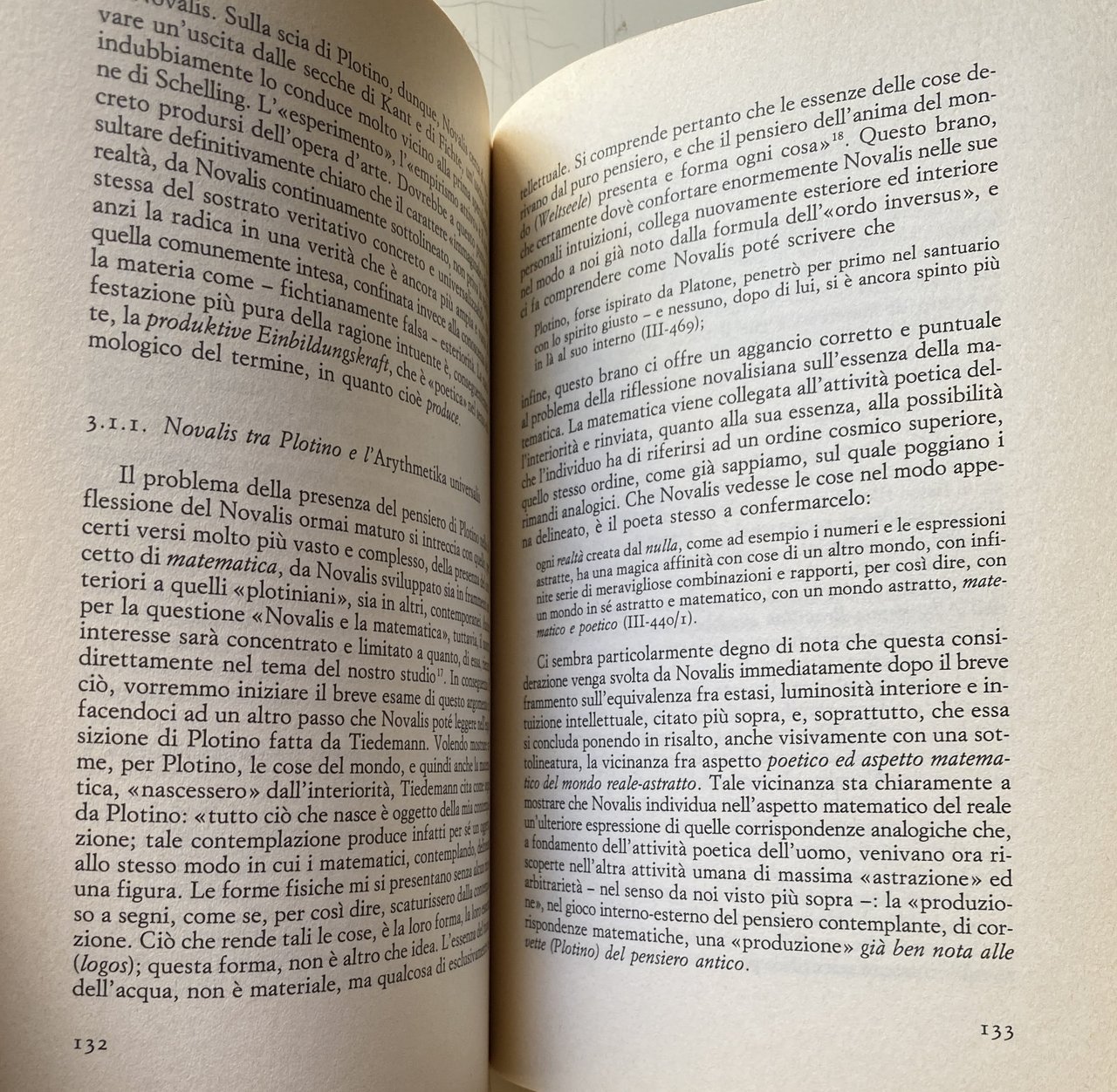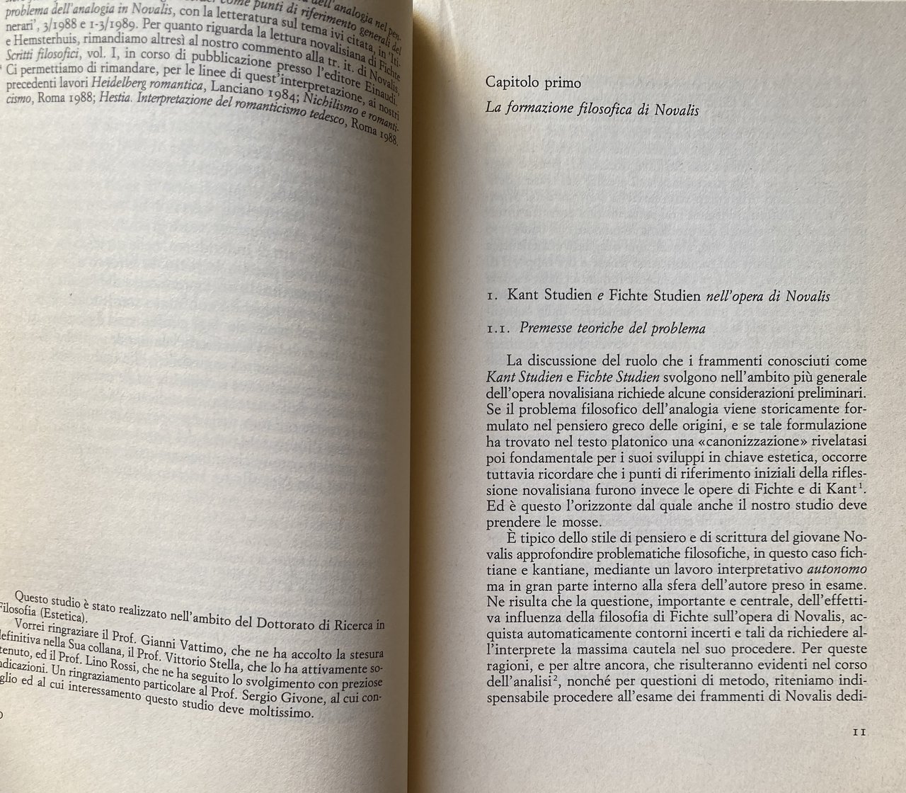 Soggetti: Critica letteraria, Psicologia, Filosofia, Estetica, Romanticismo, Poetica romantica, Letteratura tedesca, Poesia, Interpretazione, Ermeneutica, Metafisica, Profezia, Frammenti, Georg Friedrich Philipp Freiherr von Hardenberg, Scrittura novalisiana Correnti filosofiche Kant Hemsterhuis Fichte Fisica Medicina Riferimento Bibliografia Idealismo tedesco Germanistica Opere generali Europa Cultura europea Settecento Arte Libri universitari fuori catalogo Umanistica Saggi Studi Ordo inversus Heidelberg Nichilismo Bachofen Baeumler Civiltà Concetto Concezione Creuzer Analogia Dialettica Spirito Dionisiaco Dioniso Divenire Divino Femminile Filologia Natura Storia Fratelli Grimm Friedrich Schlegel Goethe Görres Greci Grecità Hamann Hegel Heidegger Herder Herderiana Hölderlin Jacob Grimm Jena Kritische Idea Linguaggio Lobeck Ludwig Klages Matriarcato Metamorfosi Mito Mitologia Mondo Mythologie Nietzsche Passato Pensiero Problema Religione Ruolo Sacralità Savigny Schelling Schiller Schlegel Scienza Senso Significato Simbolica Soggetto Spengler Spirituale Sturm und Drang Sviluppo Verità Visione I discepoli di Sais Scritti filosofici Comparatistica Paul Klee Ottocento Scienze Formazione filosofica Studien Hemsterhuis Valenza estetico-analogica Novalisiani Vermischte Bemerkungen Blüthenstaub Glauben und Liebe Vorarbeiten zu verschiedenen Fragmentsammlungen Dialogen und Monolog Freiberger naturwissenschaftliche Das allgemeine Brouillon Influenza Plotino Arythmetika universalis Fiaba Prosa Adepto Heinrich von Ofterdingen Signatura rerum Iniziazione Problema böhmiano Modernità H. Simon Romantik Deutschland Fruhromantik Utopia Kurzke Kuhn Kapitza Mahl Schanze Seidel Ritter Behler Beguin Anceschi Diltey M. Frank Givone Schriften Kritische Ausgabe Briefwechsel Werke Chimica Medicina Mineralogia Cristallologia Cristianesimo Età dell'oro Eterno Fanciulli Sublime Corporeità Mistero Immaginazione Fantasia Jurij Striedter Eros Favola Libri autografati Dedica autografa dell'autore Collezionismo Da collezione Literary criticism Psychology Philosophy Aesthetics Romanticism Romantic poetics German literature Poetry Interpretation Hermeneutics Metaphysics Prophecy Fragments writing Philosophical currents Physics Medicine Reference Bibliography German Idealism Germanistics General works Europe European culture Eighteenth century Art University books out of print Humanities Essays Studies Nihilism Civilization Concept Conception Analogy Dialectics Spirit Dionysian Dionysus Becoming Divine Feminine Philology Nature History Greekness Language Matriarchy Metamorphosis Myth Mythology Past World Thought Problem Religion Role Sacredness Science Sense Meaning Symbolic Spiritual Subject Development Truth Vision The disciples of Sais Philosophical writings Comparative studies Nineteenth century Sciences Philosophical training Aesthetic-analogical value Influence Plotinus Fairy Tale Prose Initiation Modernity Chemistry Medicine Mineralogy Crystallology Christianity Golden Age Eternal Children Sublime Corporeity Mystery Imagination Fantasy Fable Autographed books Dedication by the author Collectibles