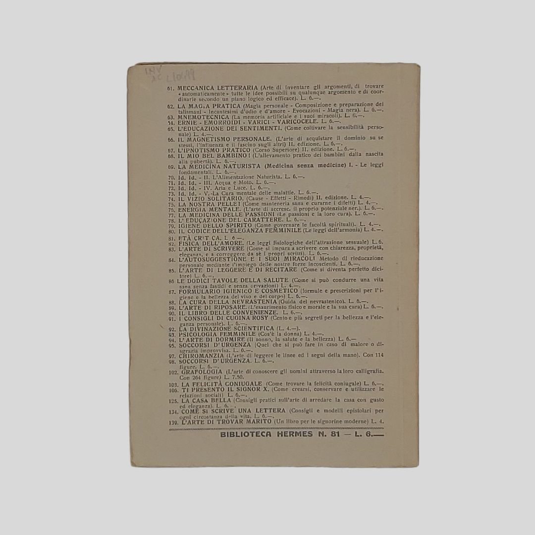 In-16 (cm 17), pp. 49-3 nn (indici). Una guida fisica e un poco spirituale per la donna e l’uomo che hanno raggiunto o varcato i quarantacinque anni.