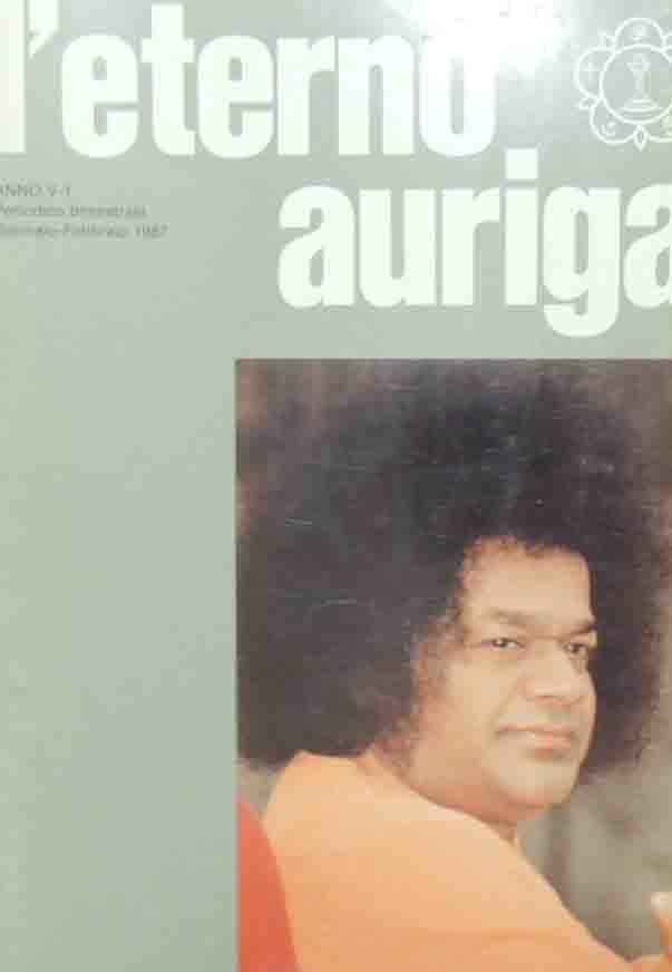 L’eterno auriga. Periodico bimestrale, anno V, n. 1, gennaio-febbraio 1987, pp. 52, ill. b.n., cm 24, pubblicazione spillata. Sommario: Sathya Sai Baba, Gli immortali devoti – Id., Cultura e la sacralità della vita – Id., Dio è dolcezza in ogni cosa – Id., Il credo fondamentale – C. Balasingham, Swadharma – N. Kasturi, Gli anni della scuola. La storia della vita di Sai Baba – Biografia dei grandi capi religiosi. Zoroastro (circa 650 a. C.) – Sathya Sai Baba, Fede e verità. Discorso natalizio 1986 – A. Monaldi, Una visita alla scuola elementare di Puttaparthi – P. Krystal, Le festività – Sathya Sai Baba, I cinque sacrifici – Storia per grandi e piccicni. Estasi di Ramakrisna - Annunci ed avvisi – La posta dell’Eterno Auriga. Perfetto.