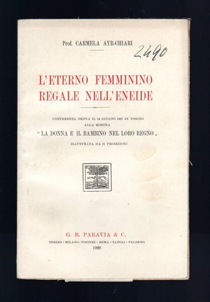 Opuscolo vintage. Conferenza detta il 24 giugno 1927 in Torino. Dedica autografa dell'autrice. Segni di biro in copertina, tagli non rifilati. Usura da scaffale. Ordinario segno del tempo.