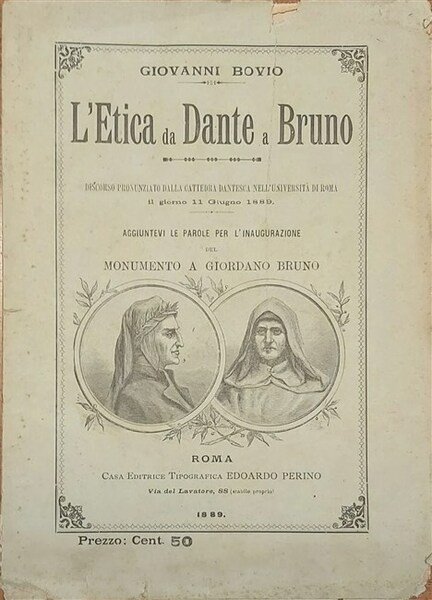 L'ETICA DA DANTE E BRUNO. Discorso pronunziato dalla cattedra dantesca nell'Università di Roma. Aggiuntevi le parole per l'inaugurazione del monumento a Bruno.