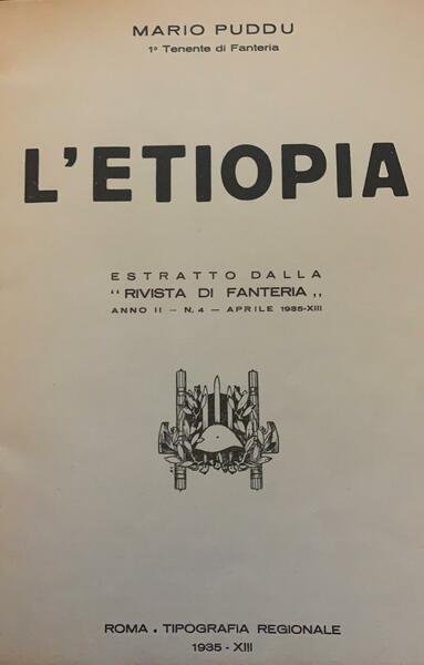 L'Etiopia estratto dalla rivista di fanteria anno II n. 4 aprile 1935