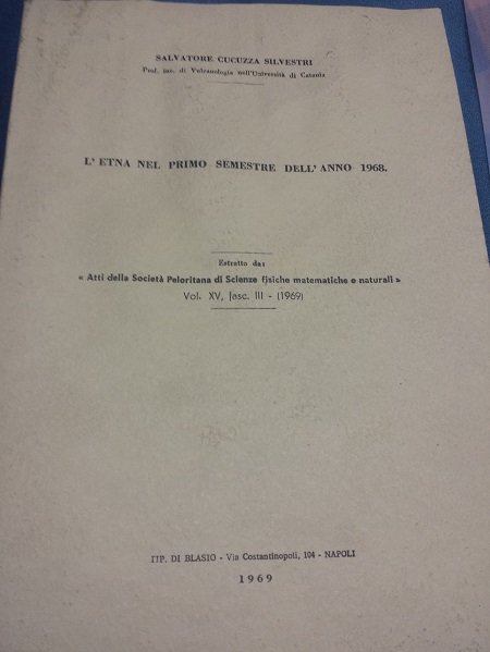 L'ETNA NEL PRIMO SEMESTRE DELL'ANNO 1968 ESTRATTO DA ATTI DELLA SOCIETA' PELORITANA DI SCIENZE.VOL XV FASC III