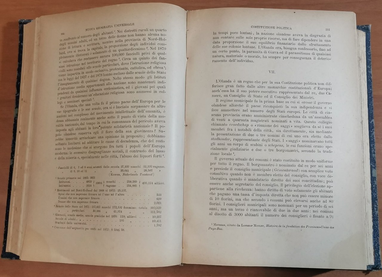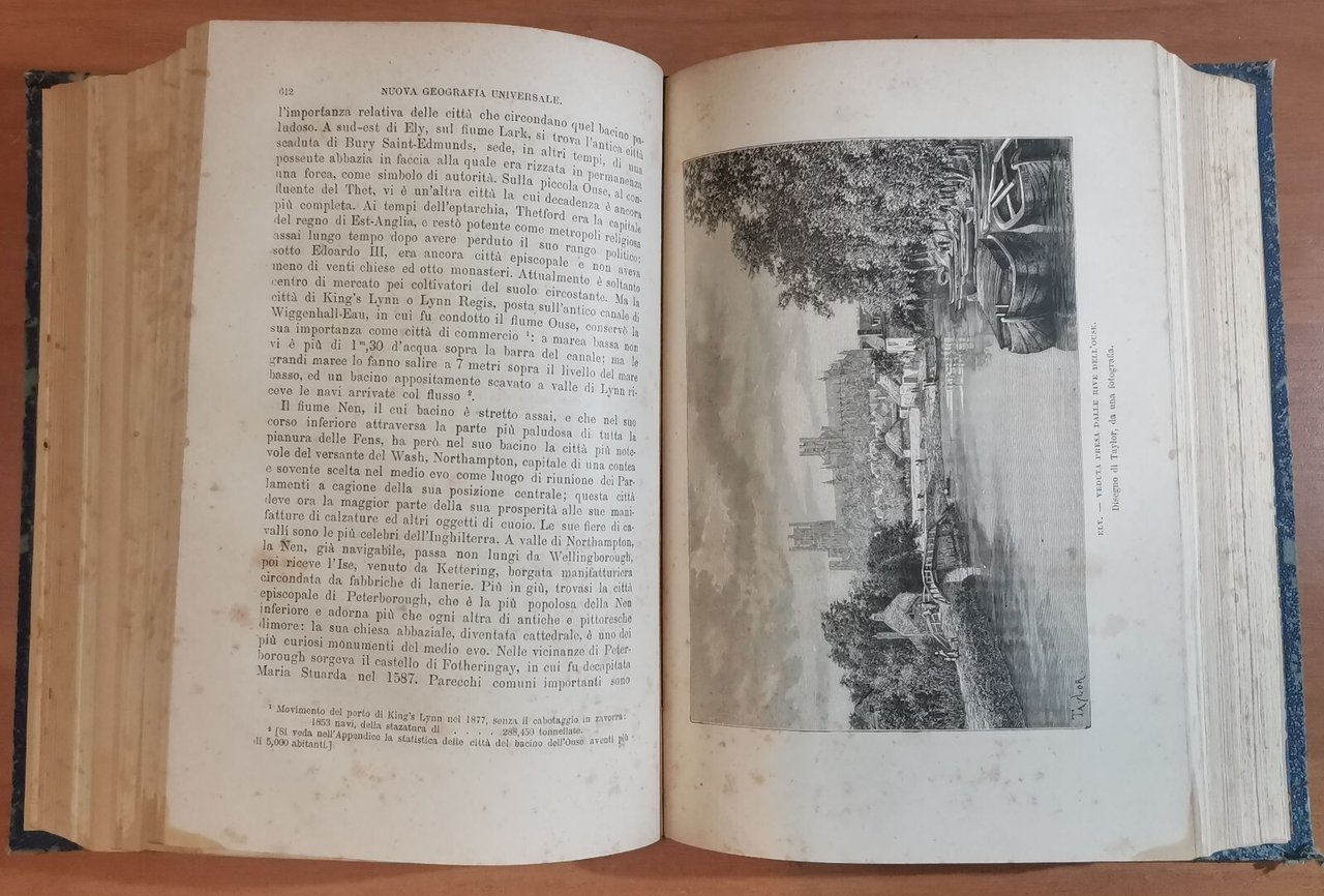 1110 pagine, 6 carte colorate, 205 carte intercalate nel testo, 81 tipi e vedute incise in legno. Copertina coeva in mezza pelle con titoli dorati al dorso (conserva i piatti in brossura originali). stato di conservazione: molto buono (pagine normalmente ingiallite, piccole imperfezioni alla copertina)