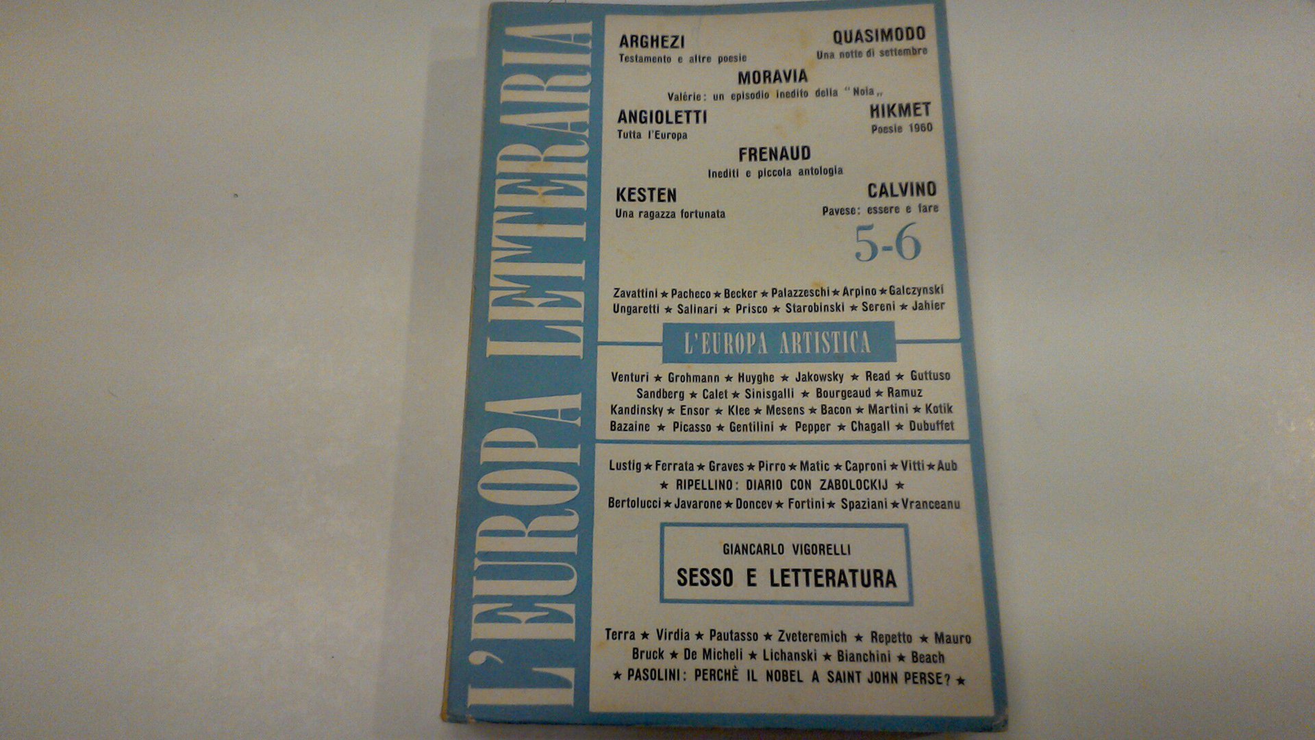 Rivista bimestrale di letteratura e critica artistica diretta da Giancarlo Vigorelli. Numero 5-6 del 1960. Contiene testi letterari, poetici e critici di autori italiani e stranieri. Tra gli autori di questo numero: Moravia, Quasimodo, Hikmet, Calvino, Zavattini, Palazzeschi, Arpino, Ungaretti, Prisco, Starobinski, Sereni, Frenaud, Kesten, Arghezi, Angioletti.