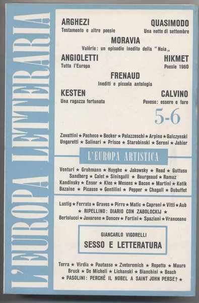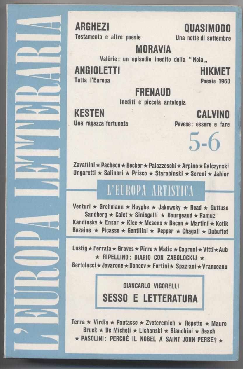 l'Europa letteraria - Rivista bimestrale dicembre 1960 Anno I n. 5-6