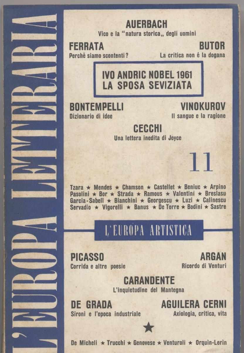 l'Europa letteraria - Rivista bimestrale ottobre 1961 Anno II n. 11