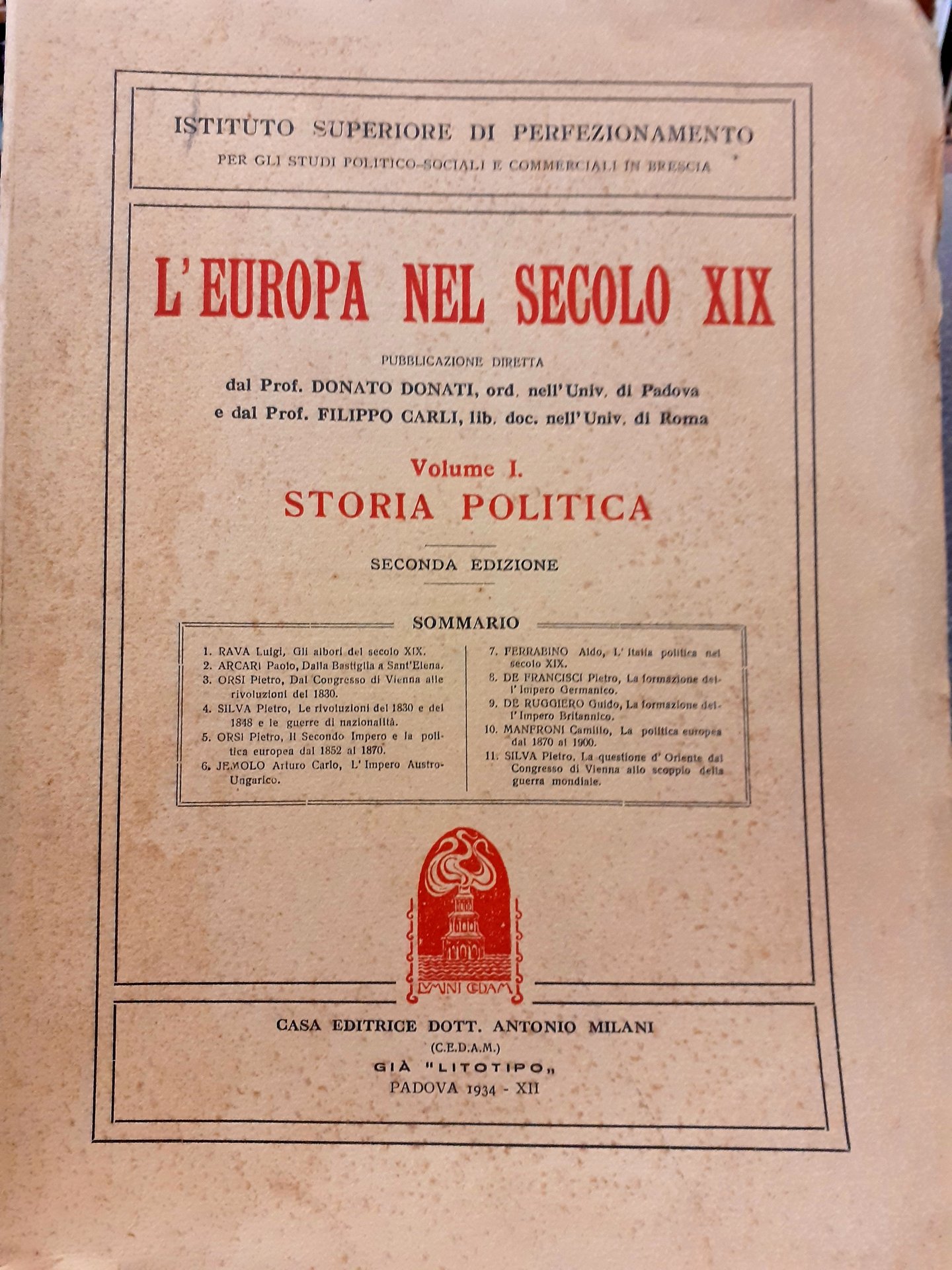 L'EUROPA NEL SECOLO XIX. vol. I) STORIA POLITICA., vol. II) LA LETTERATURA., vol. III) LE SCIENZE. parte 1.Le scienze teoretiche. vol. IV) LE SCIENZE. parte 2. Le scienze applicate., Istituto Superiore di perfezionamento per gli Studi Politico-Sociali e Commerciali di Brescia., (anni 1932/34).