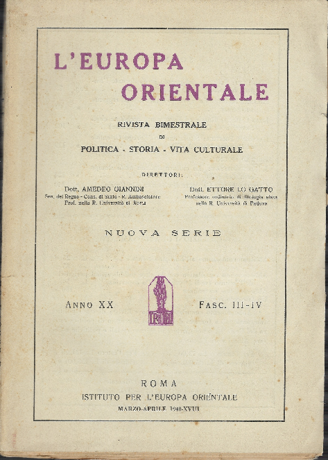 L'europa Orientale Rivista Bimestrale Di Politica -Storia -Vita Culturale