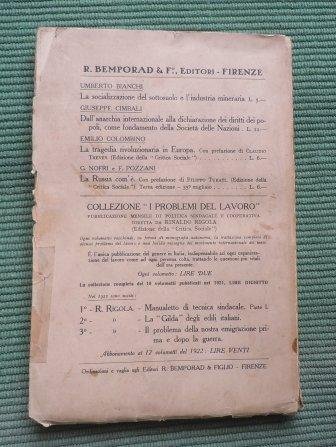 20° migliaio; br. ed. in 8°, pp. 274 + (2). Indice analitico alfabetico. Dedica dell'autore alla prima carta dell'occhietto. Una illustrazione in antiporta con ritratto di Nitti. Piccole fioriture al solo frontespizio, pagine pulite. Minime imperfezioni al retro di copertina.