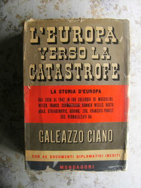 L'EUROPA VERSO LA CATASTROFE. 184 COLLOQUI CON MUSSOLINI, HITLER, FRANCO, CHAMBERLAIN, WELLES, GORING ECC. VERBALIZZATI DA GALEAZZO CIANO CON 40 DOCUMENTI DIPLOMATICI INEDITI