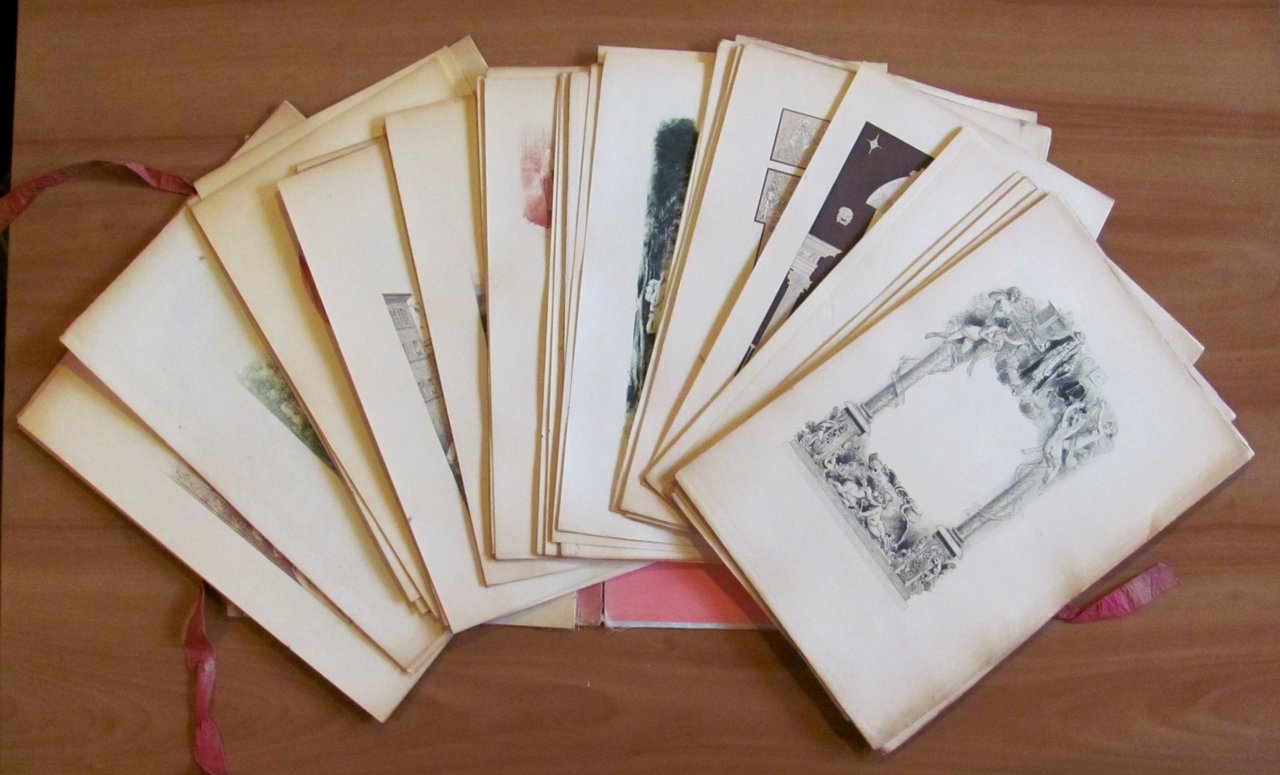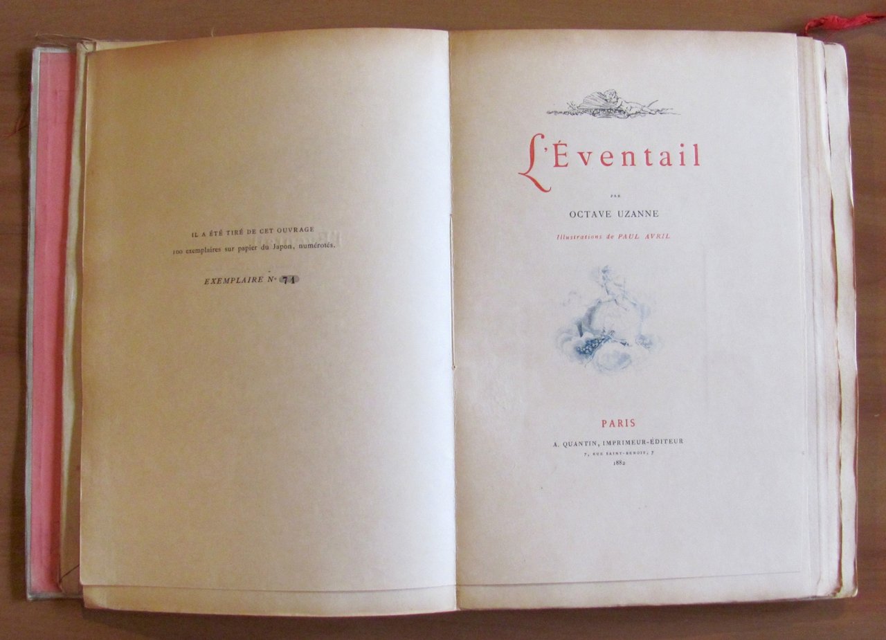 Moltissime illustrazioni, testatine, finalini, fregi e cornici in b/n e in tinta n.t., anche a piena pagina, di Paul Avril. Ed. A. Quantin - Paris, 1882. Tiratura Limitata a 100 esemplari numerati sur papier du Japon, nostro N.71. L'Opera è composta di due cartelle originali rivestite in seta, illustrate a colori ai piatti e ai dorsi, con lacci, contenenti il libro in brossura editoriale con ali con belle illustrazioni a colori e oro ai piatti e al dorso e una Suite contenente frontespizio e 65 tavole sciolte con tutte le illustrazioni riprodotte nel libro. 19,5x28; pp.143 + le 65 tavole della Suite. Rari e entrambi in Buonissimo stato.
