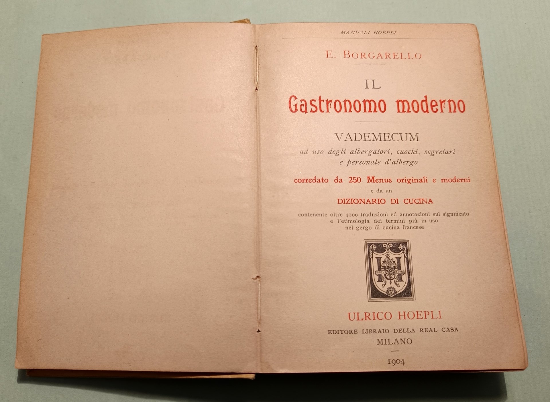 ll gastronomo moderno. Vademecum ad uso degli albergatori, cuochi, segretari e personale d'albergo corredato da 250 menus originali e moderni e da un dizionario di cucina.