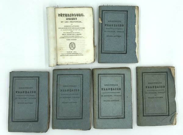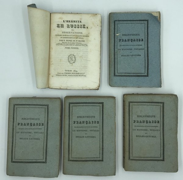 L'Hermite en Russie, ou Observations sur les moeurs et les usages russes au commencement du XIXe siècle; par E. Dupré de S.t.-Maure […]. Tome Premier (-Cinquème). Turin 1829. Chez Les Frères Reycend et C.e. UNITO A: Pétersbourg, Moscou et les provinces, ou Observations sur les moeurs et les usages russes au commencement du XIXe siècle; suite de l'Hermite en Russie; par E. Dupré de S.t-Maure […]. Tome Premier (-Sixième). Turin 1830. Chez Les Frères Reycend et C.e.
