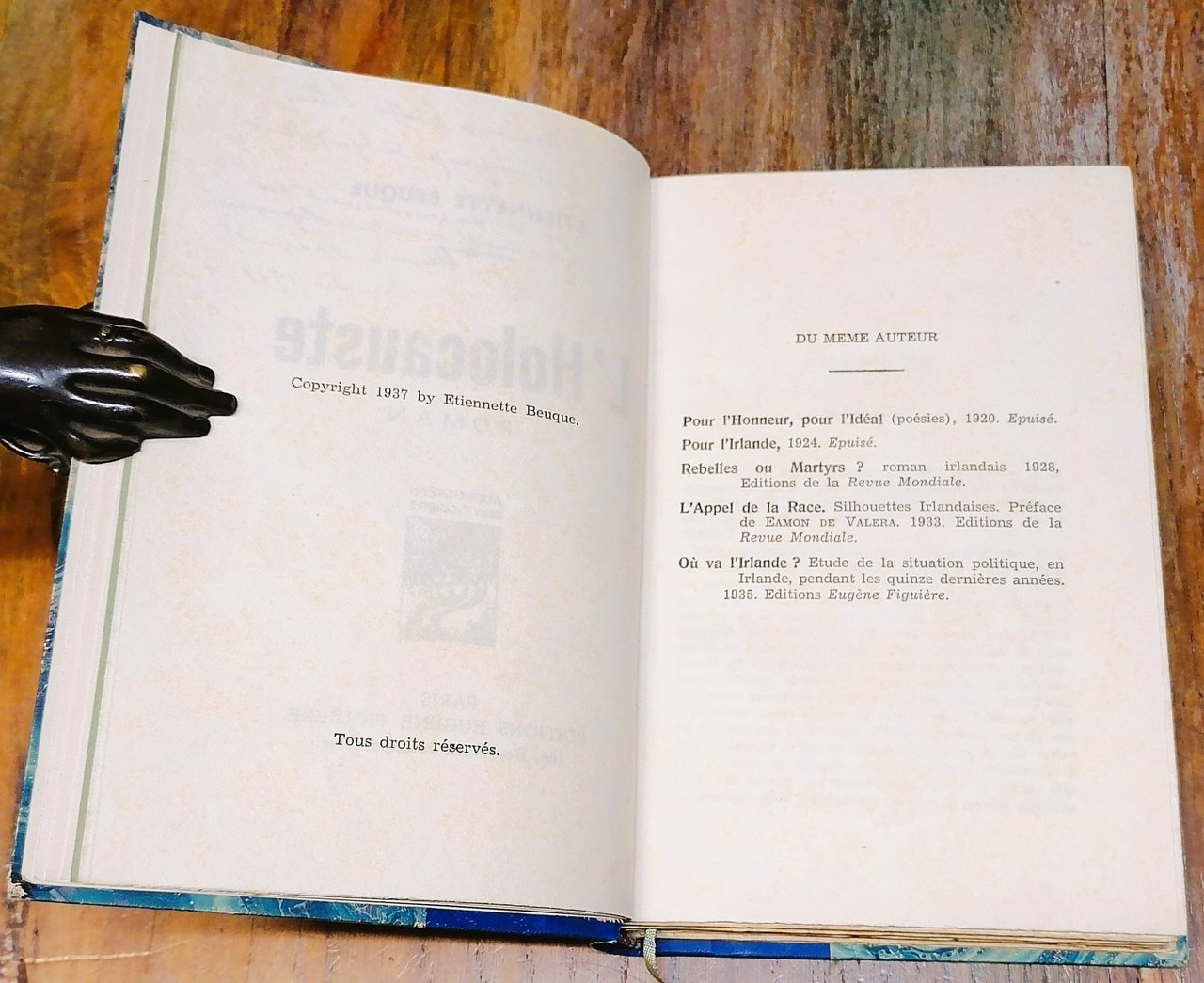 (Irlanda - Romanzo storico - Causa irlandese - ) In 16° grande (cm 19 x 12,5), legatura in mezza tela blu, fregio in oro al dorso e tassello in pelle con titoli dorati, carta marmorizzata ai piatti, conservata l'intera brossura editoriale originale, segnalibro in seta verde, pp. 254,(2). Al frontespizio dedica autografa dell'Autrice (scrittrice e poetessa, vicina negli anni Trenta al Parti National Breton) al bibliofilo ferrarese Guelfo Sitta. Volume solido e ben conservato.