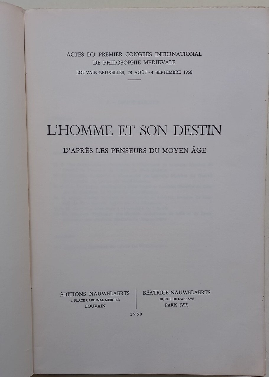 In 8', br. ed., pp. 845, Actes du premier congres international de philosophie medievale- Lovain-Bruxelles, 28 Aout-4 Septembre 1958; dorso brunito , pieghe all'angolo sup del piatto post(foto)segni a margine a penna n.t., ma solo fino a p. 48, buona parte intonsa. ***Due to bureaucratic reasons, books dated over 70 years old cannot be immediately exported, please contact us before placing the order.***