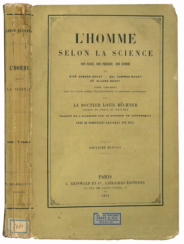 L'homme selon la science. Son passé, son prèsent, son avenir, ou D'où venons-nous? Qui sommes-nous? Où allons-nous? Exposé très-simple suivi d'un grand nombre d'éclaircissements et remarques scientifiques. Traduit de l'Allemand par le docteur Ch. Letorneau. Orné de nombreuses gravures sur bois. Deuxième édition.