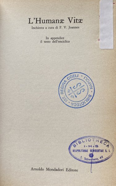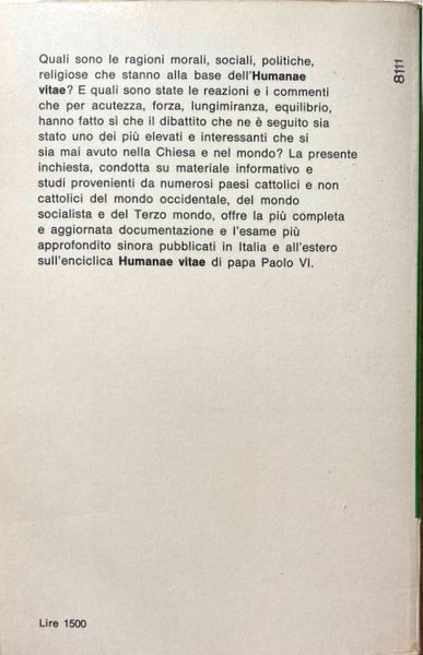 Titolo: L'humanae Vitae. Inchiesta. Il più importante e discusso documento del Pontificato di Paolo VI nei commenti e nelle reazioni mondiali. In Appendice il testo dell'Enciclica.
