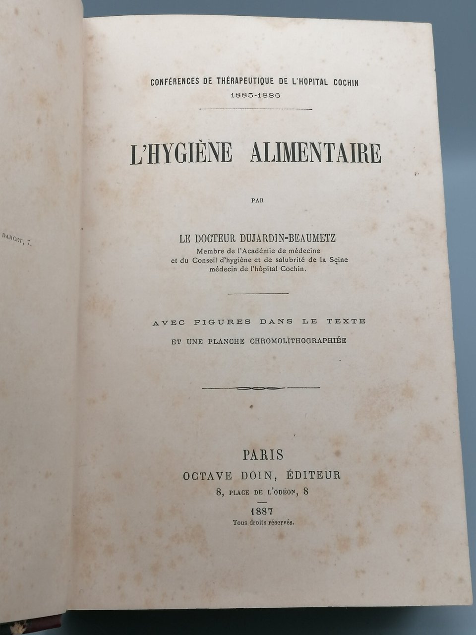 L'Hygiene Alimentaire Livre Libro Antico 1887 Dujardin Beaumetz Doin Igiene