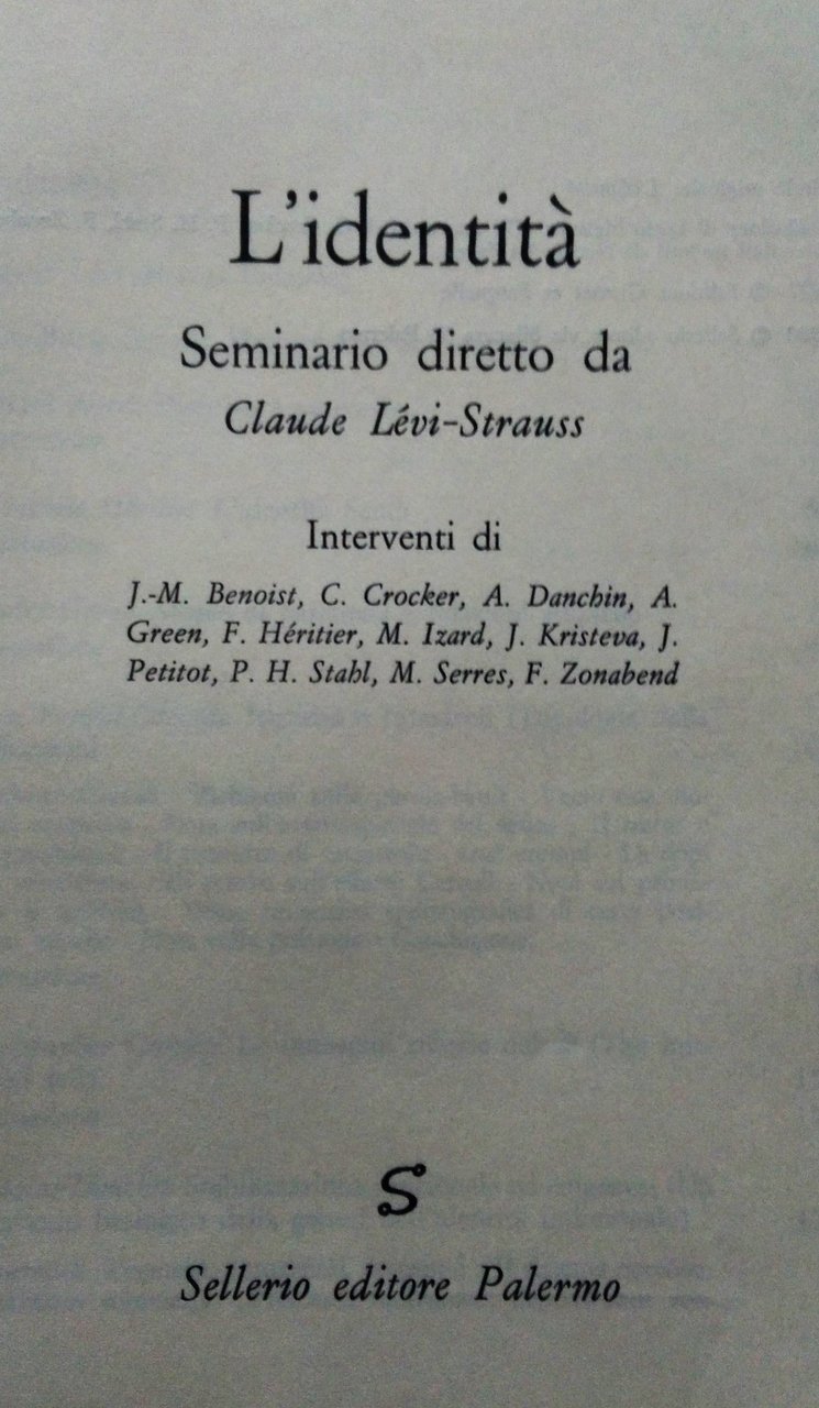 L'identità. Seminario diretto da Claude Levi-Strauss.