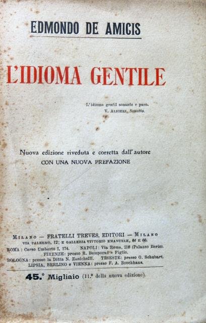 Nuova edizione riveduta e corretta dall'Autore con una nuova prefazione. Treves Editori, Milano, 1908. (11° della nuova edizione). In 8vo, pp. 410 + 1 di Indice e 3 di pubblicità editoriale relative a “Il Sempione”, “L'illustrazione Italiana”, “Il secolo XX, leg. con piatti in percallina e dorso in mz. pelle rossa con titoli oro. Curioso il trattatello in fine sul vino che tratta degli effetti psicologici del vino. Usuali segni al dorso e un po' di uniforme ingiallimento delle pagine, elegante la legatura, buon esemplare.
