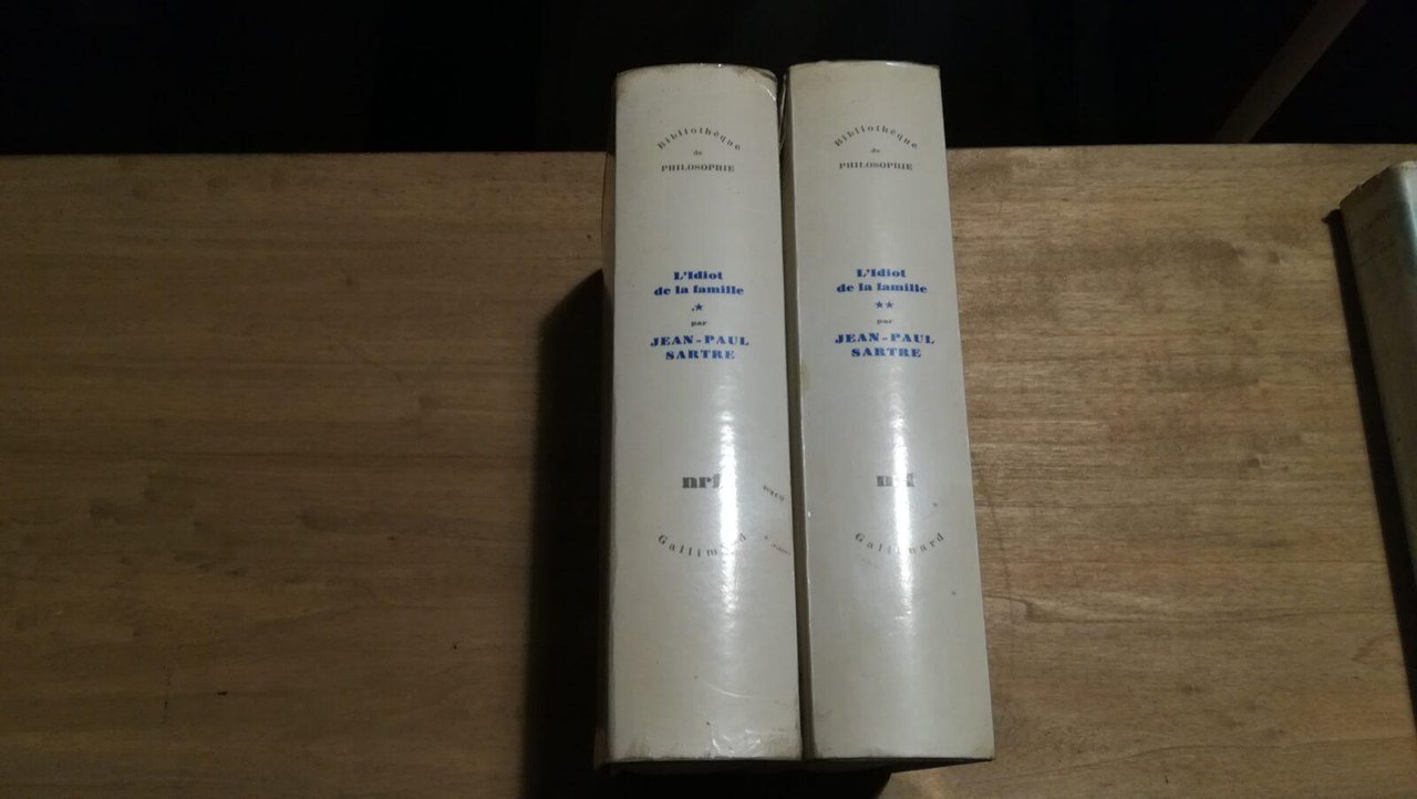 Sartre - L'Idiot de la famille Gustave Flaubert de 1821 а 1857 Gallimard - 1971 2 volumi Macchioline sovraccoperta vol I, evidente strappettetto lato alto sovraccoperta, macchie da acqua ai tagli (no tracce di umiditа alla pagine), leggere fioriture alle prime e ultime pagine e ai tagli. Macchioline sovraccoperta vol II, macchie da acqua ai tagli (no tracce di umiditа alle pagine), eggere fioriture alle prime e ultime pagine e ai tagli. Libro in ottime condizioni, minimi segni del tempo. Non esitate a contattarci per altre foto o richieste. Saremo lieti di soddisfare ogni vostra esigenza.