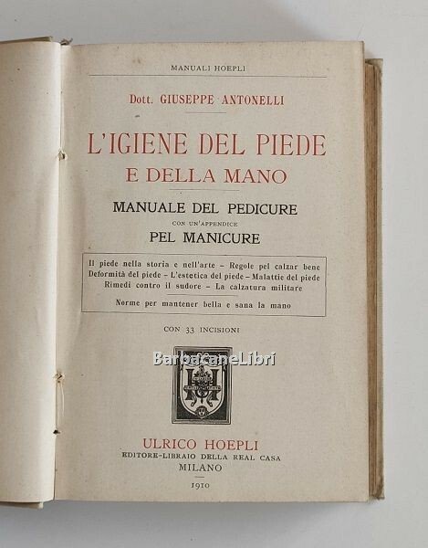 L'igiene del piede e della mano. Manuale del pedicure con un'appendice pel manicure. Il piede nella storia e nell'arte - Regole pel calzar bene - Deformità del piede - L'estetica del piede - Malattie del piede - Rimedi contro il sudore - La calzatura militare - Norme per mantener bella e sana la mano
