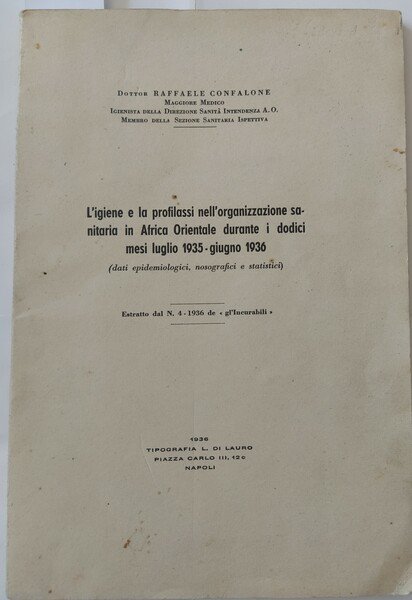 L'igiene e la profilassi nell'organizzazione sanitaria in Africa Orientale durante i dodici mesi Luglio 1935 – Giugno 1936 (dati epidemiologici, nosografici e statistici)