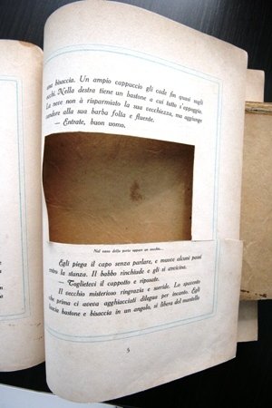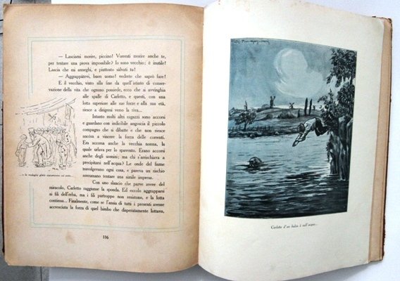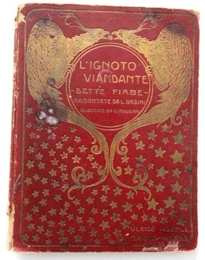 Sette fiabe con illustrazioni e disegni di G. Muggiani, pag 131, rilegato. Copertina rigida con strappi e macchie, dalla pag 5 è stato tagliato il disegno (come da foto); complessivamente, vista la rarità del libro, è un esemplare accettabile.