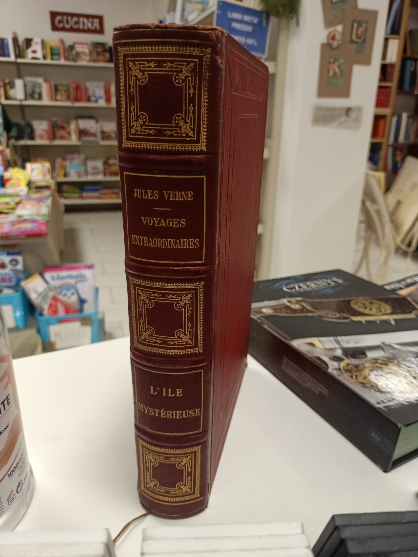 L'ile mystérieuse di Jules Verne prima edizione in francese. Rilegato in pelle con pagine dorate! Disegni originali in ottime condizioni!