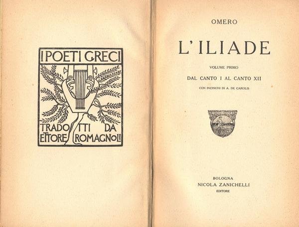 CON INCISIONI DI A. DE CAROLIS. ZANICHELLI, BOLOGNA, 1924. COLLANA I POETI GRECI TRADOTTI DA ETTORE ROMAGNOLI.