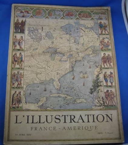 In-folio, pp. XXVIII di pubblicità illustrate, 351-404, XXIX-XXXVI di altre pubblicità, bella brossura editoriale illustrata a colori con riproduzione di antica cartografia degli Stati Uniti e del Canada Orientali, del Golfo del Messico e dei Caraibi, attorniata da altre cartografie più piccole e da scene di vita degli Indiani d'America. Interamente illustrato a colori e in b.n. Perfetto stato. Numero monografico de 'L'Illustration' sulla presenza coloniale francese nell'America del Nord e in parte dell'America Centrale e sulla storia delle relazioni franco-americane. Contributi di varî autori (De La Roncière, Sorbets, Cadilhac, ecc.) riguardanti, tra l'altro, il padre Jacques Marquette e le missioni evangelizzatrici francesi in Nord America, New York, la situazione politico-economica degli Stati Uniti del 1937, gli ambasciatori americani a Parigi, Cuba, l'esposizione di Degas all'Orangerie, Cuba, ecc.