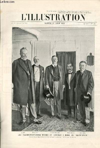 L'ILLUSTRATION JOURNAL UNIVERSEL N° 3260 - Gravures: les plénipotentiaires russes et japonais à bord du "Mayflower" - les fêtes en l'honneur de la flotte française à Portsmouth et à Londres - la premiere rencontre des plénipotentiaires russes et japonais.