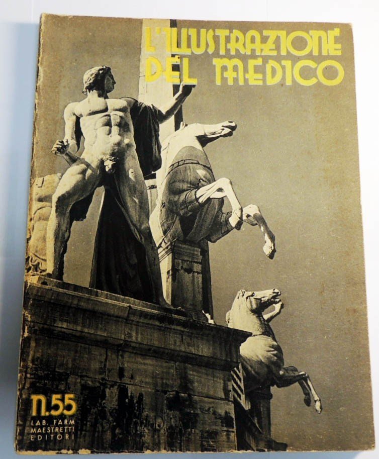 L’illustrazione del medico, Laboratori Farmaceutici Maestretti, Milano, n. 55, febbraio 1939, pp. 32, IV, ill. b.n., cm 27. Sommario: Ugo Cerletti, Mimetismo - Bruno Cicognani, Il carabiniere e la bimba - Paolo Orano, Medicina e filosofia - Filippo Camperio, Le tragedie dei sommergibili e i moderni mezzi di salvataggio - Mario Puccini, Umanità e spiritualità del paesaggio toscano - Giuseppe Marotta, Noi che conosciamo la paura. Lievi tracce d’uso, per il resto buon esemplare.