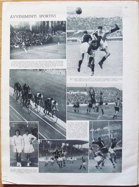 Belle pagine pubblicitarie e molte illustrazioni fotografiche in b / n n.t. Contiene: Discorso alla Decima Legio; Le operazioni di Guerra dopo il primo mese di ostilità; Piazza Municipio cuore di Napoli; Avvenimenti sportivi. Editori Treves - Treccani - Tumminelli - Milano, 1939. Brossura editoriale con usure al dorso e al bordo esterno della copertina. e prime due pagine di pubblicità risultano mancanti verticalmente della metà esterna. 29x38,5; pp.30 ca. Rara, Buono stato. ,
