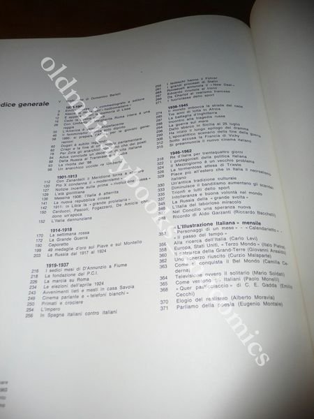 DESCRIZIONE: Garzanti Milano 1963 br. ed. t. tela con sovracc. ill. e cofanetto ed. pp. VIII+376 numerosissime illustrazioni b/n n.t. in 4°. Volume celebrativo dei 90 anni dell'"Illustrazione Italiana", riproducente numerosissime immagini ed articoli del periodico che finiscono col comporre un originale affresco di quasi un secolo di storia d'Italia. CONDIZIONI: Buone/Ottime. Questo libro proviene da una importante biblioteca privata, per cui alla prima bianca sono riportati i codici di catalogazione oltre all’etichetta sul dorso. PESO / WEIGHT: 2360 gr. without package
