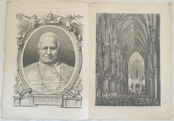 Numero del 10 febbraio 1878 dell'Illustrazione italiana. Il volume in folio è riccamente illustrato da incisioni nel testo e fuori testo. All'interno: Truppe russe a Costantinopoli, il Conte Santorre di Santarosa, L'arte tedesca di Justus Le incisioni: Il Principe imperiale di Germania presenta al popolo il principino di Napoli, Imperatore Alessandro visita le fortificazioni di Plewna, Entrata del Principe Carlo di Rumenia a Plewna, Un momento fortunato quadro di Ruduaux, Papa Pio IX, Le esequie del Re al Duomo 24 gennaio, Monte Eta in Grecia, Castello Romeli Hissar a Costantinopoli, All'alba nella rada di Trieste In buone condizioni.Copertina editoriale in buone condizioni con lievi usure ai margini e dorso. Legatura editorialmente assente. Pagine in buone condizioni con fioriture. Piegatura orizzontale. In folio cm 38,5x27,5. Pp. da 81 a 96Number of 10th of february 1878 of Illustrazione italiana. The volume in folio is richly illustrated by engravings in the text and out of text. Inside: Russian troops in Constantinople, Conte Santorre from Santarosa, German art of Justus The prints: Prince of Germany to the people introduces the Prince of Naples, Emperor Alessandro visits the fortifications of Plewna, Entry of Prince Carlo di Rumenia in Plewna, Painting of Ruduaux, Pope Pio IX, Funeral of the King in the Dome 24th of january, Mount Eta in Greece, Castle Romeli Hissar in Constantinople, In the bay of Trieste In good conditions. Editorial cover in good conditions slightly won in the extremities. Binding editoriarly lacks. Pages are in good conditions with foxing. Horizontal folding. In folio cm 38,5x27,5. Pp. da 81 a 96