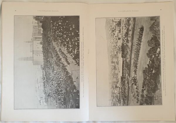 Numero del 20 gennaio 1908 dell'Illustrazione italiana. Il volume in folio è riccamente illustrato da incisioni nel testo e fuori testo. All'interno: Il disastro feroviario al Bivio dell'Acquabella presso Milano, L'Ultimo Granduca di Toscana, D'Annunzioe la Nave, La Moglie del dottore di Silvio Zambaldi, La squadra americana in viaggio per il Pacifico, Una grande cerimonia religiosa al Cairo, i giochi della neve ad Andermatt, Al salone di Torino, Centocelle ecc. In buone condizioni. Copertina editoriale in buone condizioni con lievi usure ai margini e dorso. Legatura editorialmente assente. Pagine in buone condizioni con fioriture. Piegatura orizzontale. Macchie. In folio cm 38,5x28,5. Pp. da 77 a 100<BR><BR>