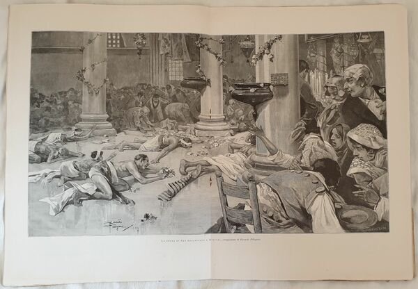 Numero del 15 marzo 1908 dell'Illustrazione italiana. Il volume in folio è riccamente illustrato da incisioni nel testo e fuori testo.All'interno: Edmondo de Amicis, Il disastro minerario di Hamstead, Il carnevalone di Milano, Il matrimonio del Principe Ferdinando di Bulgaria con la Principessa Eleonora di Reuss, La valanga micidiale di Goppenstein al tunnel del Loetchberg, L'omaggio della Rumania a Roma, La festa di San Sebastiano a Melilli, L'emigrazione europea agli Stati Uniti studiata da Leroy Beaulieu, L'acquedotto pugliese ecc. In buone condizioni. Copertina editoriale in buone condizioni con lievi usure ai margini e dorso. Legatura editorialmente assente. Pagine in buone condizioni con fioriture. Piegatura orizzontale. In folio cm 41x30. Pp. da 245 a 268Number of 15th of march 1908 of Illustrazione italiana. The volume in folio is richly illustrated by engravings in the text and out of text. Inside: Edmondo de Amicis, the mine disaster of Hamstead, IThe Carnival of Milan, the marriage of the Prince Ferdinando di Bulgaria with the Princess Eleonora di Reuss, the accident of Goppenstein in the tunnel of Loetchberg, The gift of Rumania to Roma, The feast of San Sebastiano in Melilli, European emigration to United States studied by Leroy Beaulieu, Puglia acqueduct ecc. In good conditions. Editorial cover in good conditions lightly won in the extremities. Pages are in good conditions with foxing. Horizontal folding. In folio cm 41x30 Pp. da 245 a 268