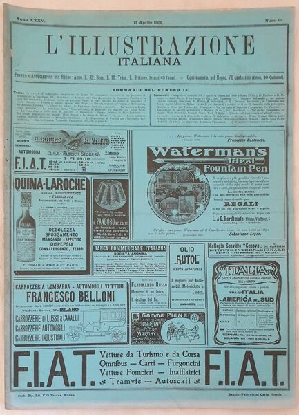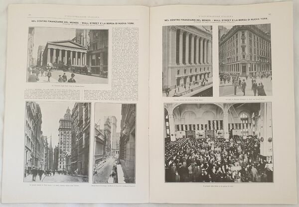 Numero del 12 aprile 1908 dell'Illustrazione italiana. Il volume in folio è riccamente illustrato da incisioni nel testo e fuori testo. All'interno: La cena dopo il 1900, I sanguinosi tumulti del 2 aprile in Piazza del Gesù a Roma, Il sanguinoso tumulto del 2 aprile a Roma, Raid Nuova York-Parigi, I Capricci del Conte Ottavio, Pelleas e Melisanda del Maestro Claudio Debussy alla Scala di Milano, Nel centro finanziario del mondo: Wall Street e la Borsa di New York, L'esposizione di canotti automobili a Monaco, Manuel Ugarte, Alfredo Panzini ecc. In buone condizioni. Copertina editoriale in buone condizioni con lievi usure ai margini e dorso. Legatura editorialmente assente. Pagine in buone condizioni con fioriture. Piegatura orizzontale. In folio cm 41x30. Pp. da 341 a 364Number of the 12nd of april 1908 of the famous illustrated of actuality established in Milan in 1873 by Treves. Inside: supper after 1900, bloody riots of 2nd of april in Piazza del Gesù in Rome, Raid Nuova York-Parigi, I Capricci del Conte Ottavio, Pelleas and Melisanda by Claudio Debussy in Scala di Milano, In the financial center of the world: Wall Street and Borsa of New York, Exposition in Monaco, Manuel Ugarte, Alfredo Panzini ecc. In good conditions. Editorial cover in good general conditions lightly worn in the extremities. Binding editoriarly lacks. Inside pages are in good conditions with foxing. Horizontal folding. In folio cm 41x30. Pp. from 341 to 364