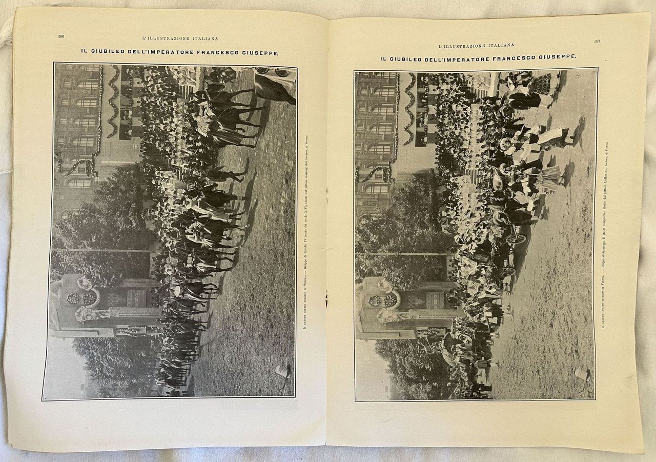 Numero del 21 giugno 1908 dell'Illustrazione italiana. Il volume in folio è riccamente illustrato da incisioni nel testo e fuori testo. All'interno: Gli esperimenti Delagrange a Milano, Una visione di Roma Imperiale; La primavera in Russia; Un busto del Generale Cavalli inaugurato a Roma, L'attrice Lydia Borelli ecc. Tra le immagini presenti: Bologna: La benedizione della Madonna di San Luca davanti a San Petronio; Al concorso ippico di Firenze; La Duchessa Massari e Gabriele D'Annunzio; Il grave conflitto agrario nel Parmense; Reval; Il Grande Corteo storico di Vienna, Avv. Lino Carrara, Luigi Lusignani; Il delitto passionale di Firenze, Il delitto passionale di Parma; "Il rivelatore" di Roberto Corniani ecc. In buone condizioni. Copertina editoriale in buone condizioni con lievi usure ai margini e dorso. Legatura in buone condizioni. Pagine in buone condizioni con rare fioriture. In folio cm 41x30. Pp. da 585 a 608.
