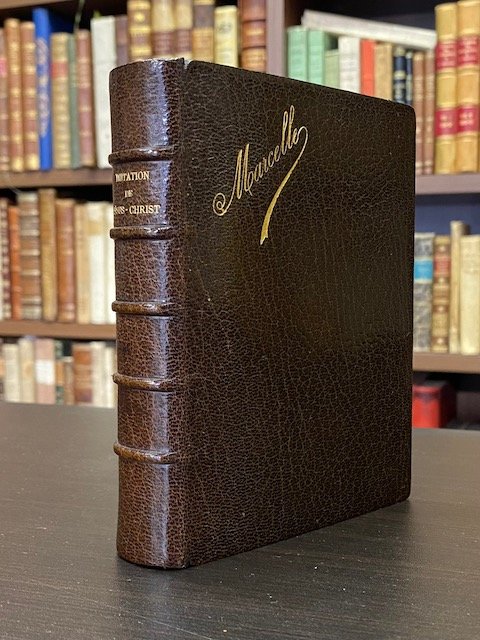 <span style="font-style: normal;">In-16° (cm. 14), pp. 466 [2] ornato da Giacomelli con 16 tavole fuori testo eseguite sulle illustrazioni di Doré (sporadiche fioriture). Eccezionale legatura di dedica firmata J. Kauffmann in pieno marocchino bruno con nome del dedicatario in oro al piatto, dorso con nervi e titolo in oro, filetti in oro ai labbri, strepitosa </span><i>dentelles</i> all'unghiatura, risguardi in seta <i>moiré</i> con dedica in oro «souvenir de première communion 16 Avril 1894 grand maman»; tagli dorati. Impressione in oro della libreria parigina A. Fontaine al risguardo. Superbo esemplare in astuccio moderno. (L)