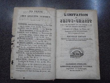 Clermont-Ferrand, D`AUGUSTE VEYSSET, 17. Avec une pratique et une prire a la fin de chaque chapitre. L`Ordinaire de la Messe, les Vepres, etc. Traduction du R.P. De Gonnelieu. In 16: pp. XX1V + 440. Stampato fine `700! Leg. in pelle. tassello al dorso con una lesione al taglio testa. Qualche traccia di vecchia umidit‡. Tarletti al margine bianco della sguardia libera.