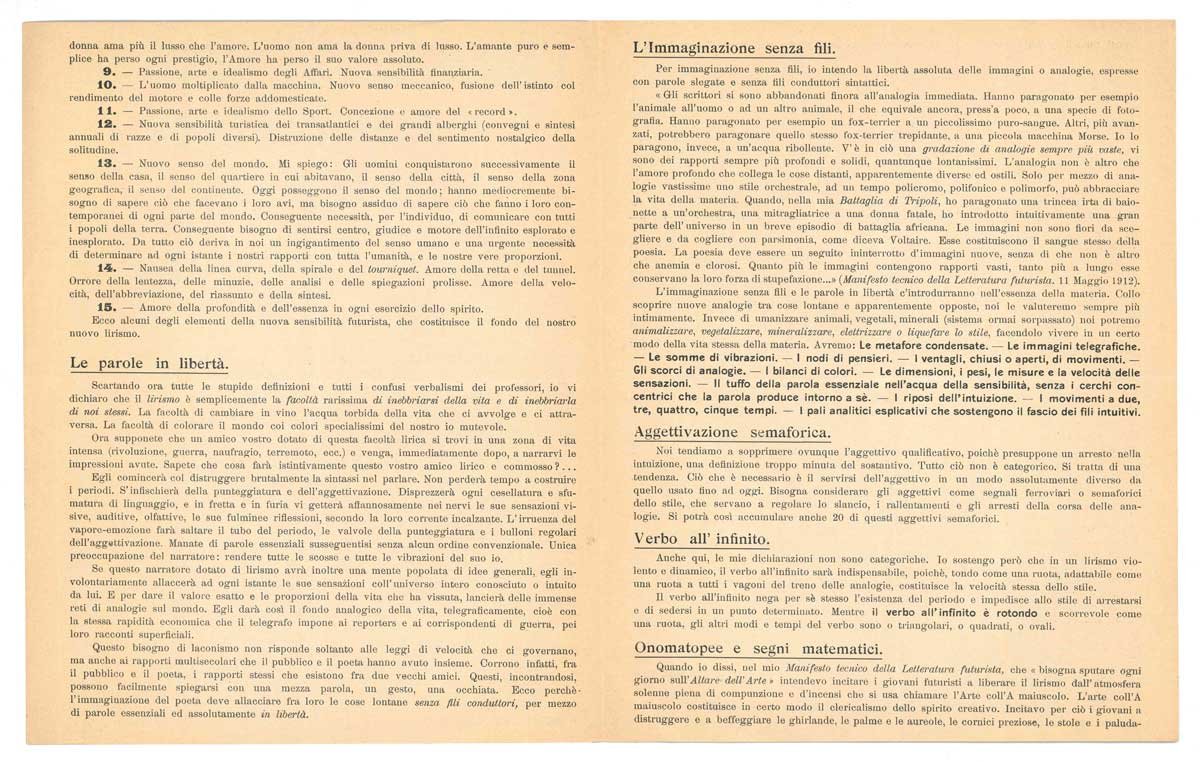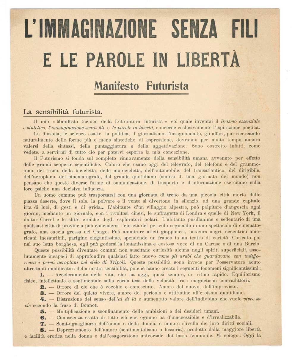 L’Immaginazione senza fili e le parole in libertà. Manifesto Futurista