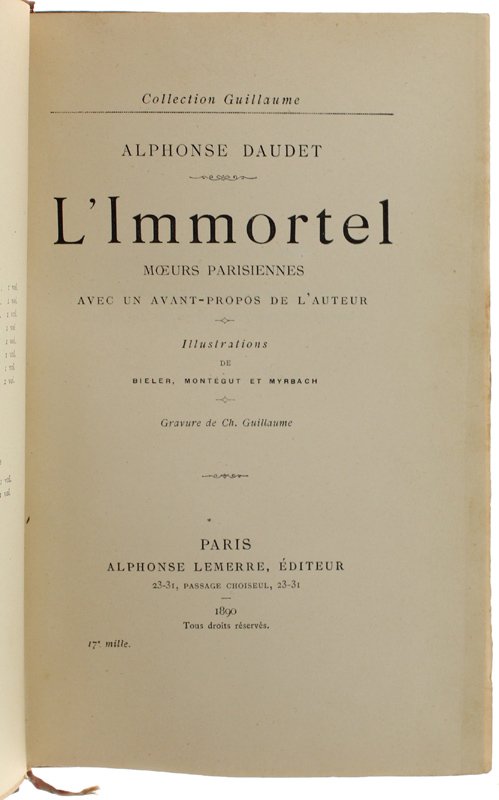 L'IMMORTEL. Moeurs parisiennes. Avec un avant-propos de l'auteur. Illustrations de Bieler, Montégut et Myrbach. Gravure de Ch.Guillaume.