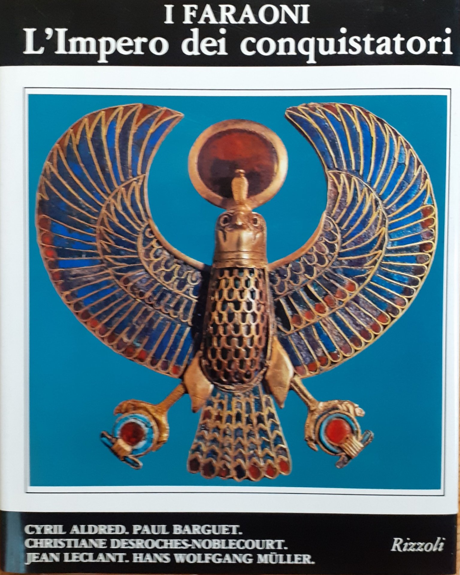 II ristampa della I ed. italiana, collana creata da André Malraux (Comitato di direzione: Paul-Marie Duval, professore al Collège de France, Membro dell'Institut; Hubert Landais, direttore dei Musées de France; Pierre Quoniam, ispettore generale dei Musées de France; Albert Beuret) Il mondo della figura", vol. XXVII; serie in tre volumi sotto la direzione scientifica di Jean Leclant, membro dell'Institut "Il mondo egizio. I faraoni", vol. II. Testi di Cyril Aldred, Paul Barguet, Christiane Desroches-Noblecourt, Jean Leclant, Hans Wolfang Müller. Traduzione dal francese di Marcello Lenzini e Maria Luisa Rotondi De Luigi. In-8 grande, pp. 8 nn+350, cart., sovracc. ill. a coll. (Tebe, Valle dei Re, tomba di Tutankhamon. Pendaglio con avvoltoio, XVIII dinastia, oro e smalto cloisonné. Il Cairo, Museo Egizio. Foto Gallimard - La Photothèque). Illustrazioni in b/n e colori, anche ripiegate (piante realizzate da Claude Abeille e carte geografiche realizzate da Jacques Person). Stato buono.