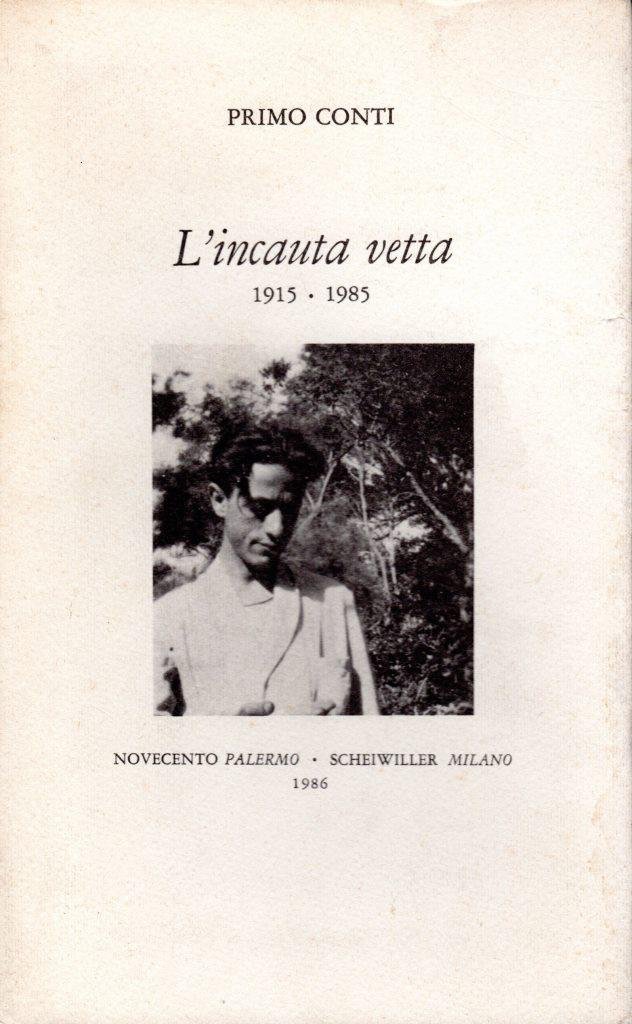 L'incauta vetta 1915-1985, prima edizione luglio 1986, pp. 161, formato 14 x 22.<BR>Copertina morbida con alette, di colore bianco, con piccola tavola fotografica in b/n al piatto anteriore e titoli in nero.Volume a cura di Gabriel Cacho Millet.<BR>Bruniture ai piatti. Nel complesso ottime condizioni.<BR>