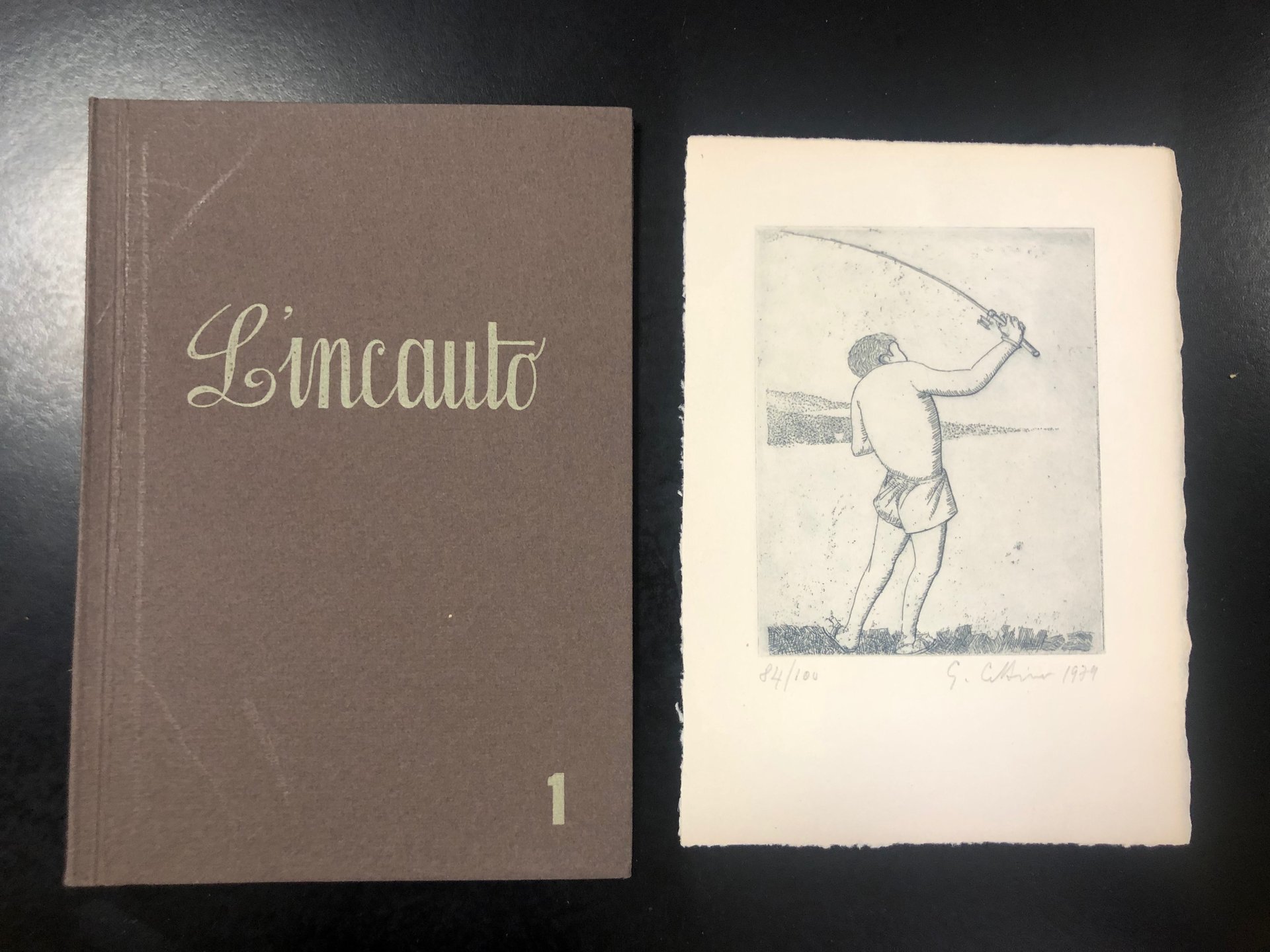 L'INCAUTO N^ 1 Poesie di Eugenio gacci. Ed. num., ns. copia n. 72/100. Contiene un'acquaforte originale, incisa e tirata su torchio a mano da Giacomo Cottino